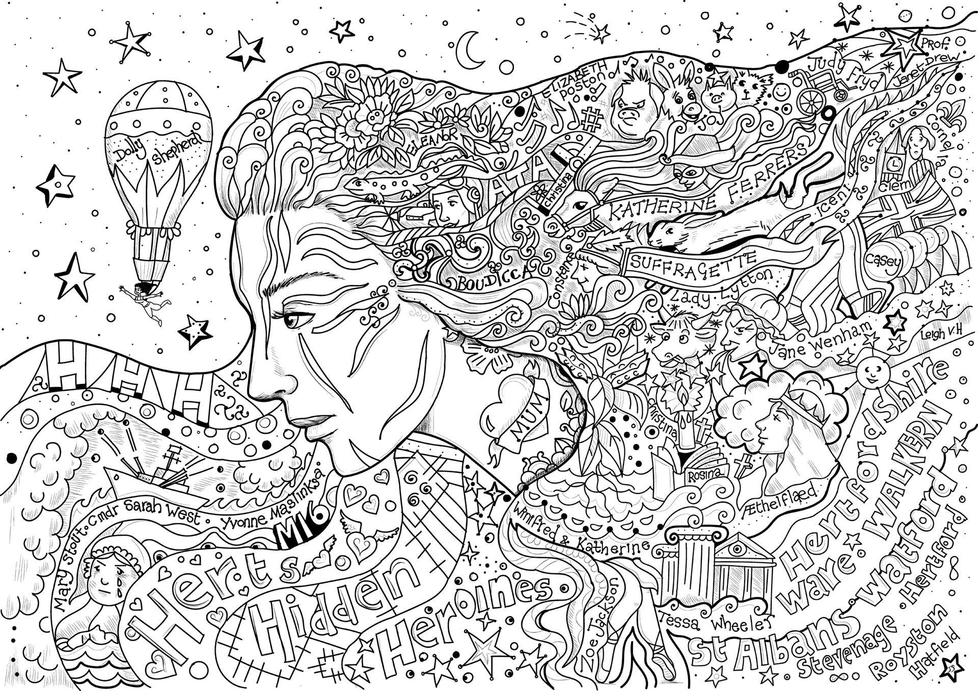 Touring colouring in board went to AO size and featured some of the forgotten historic heroines of Hertfordshire county.