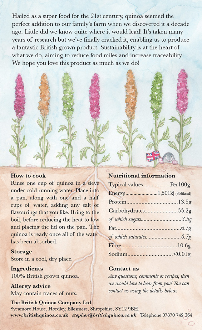 Packaging illustration for The British Quinoa Company.